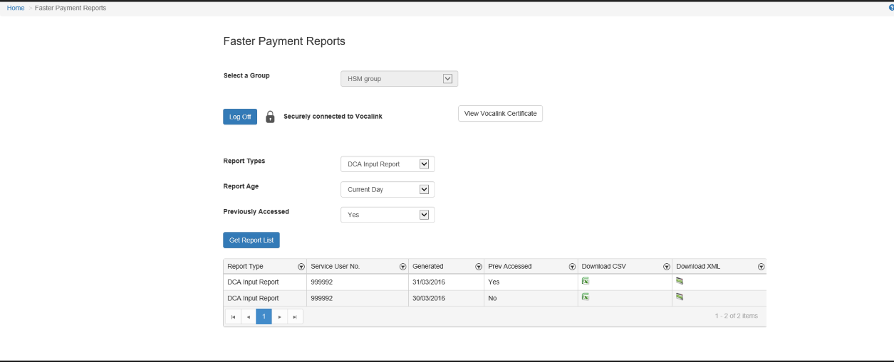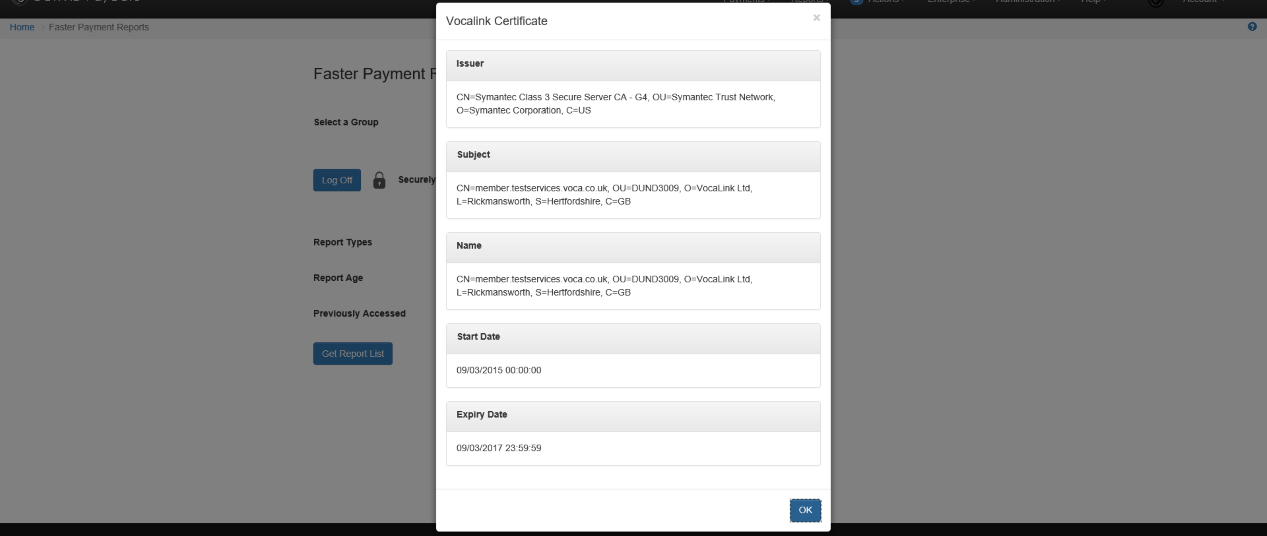 For security reasons you can view the certificate details Vocalink send by clicking the "View Vocalink Certificate" button.