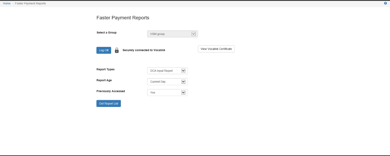 After successfully logging into the FPS reports service select the type of report you wish to download.