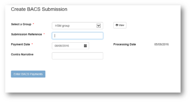 After entering a Submission Reference, the "Enter BACS Payments" button will be enabled.