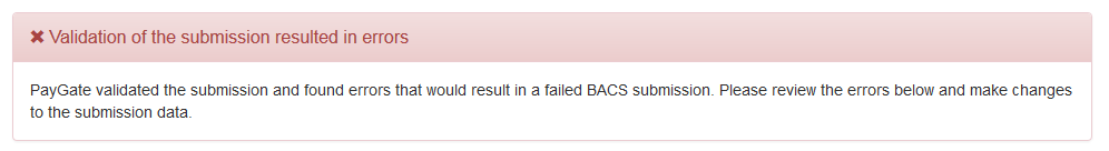 If the submission contains errors that would prevent BACS from being able to process it then PayGate will not allow the submission to continue.