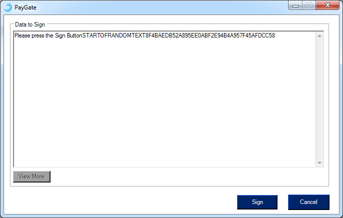 If you're using Internet Explorer without the latest PayGate Plug-in installed or you're not using Internet Explorer then the login challenge will be signed using eSigner as shown below after clicking the button.
