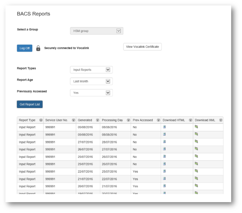 After successfully logging into the BACS reports service select the type of report you wish to download.